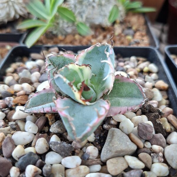 Agave titanota ‘Blue Diamond’ is ’n pragtige, kompakte agave wat uitstaan met sy blougrys blare, wit rande en donker, skerp stekels. Hierdie stadig-groeiende vetplant vorm ’n netjiese roset en is ideaal vir houers of droë landskaptuine. Dit verkies vol son en min water.