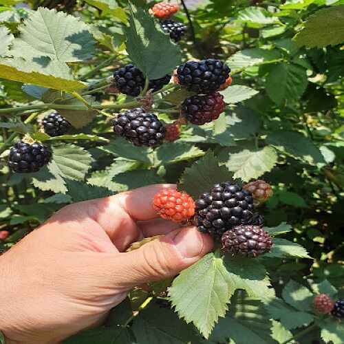 This rubus plant is an upright growing, semi-self supporting shrub which should be placed in full sun or partly shade. It differs from Rubus Fruticosus which has thorns. It prefers well drained, light sandy or sandy-loam soils with a ph level between 5.8 and 6.8 (KCl). Well decomposed compost should preferably worked into the soil before planting. It bears edible berries which can be used for fresh eating, juice, jams, tarts, deserts or teas. A trellis system can be used to support the branches.