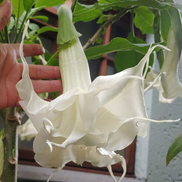 Angel Cloud is a fast growing brugmansia with large 30 cm double white flowers.