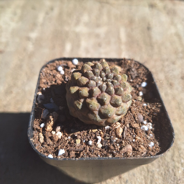 Copiapoa hypogea cv. Lizard Skin is a unique and stunning cactus variety known for its distinctive, textured skin resembling lizard scales. Native to the Atacama Desert in Chile, this cultivar has a slow growth rate and features spiny, spherical bodies that are a deep green color. It thrives in arid environments and makes an eye-catching addition to succulent collections due to its striking appearance and resilience.