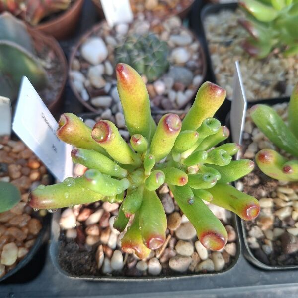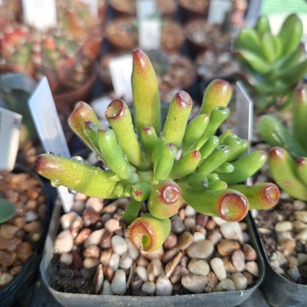 Crassula ovata, algemeen bekend as die Jadeplant, is ‘n gewilde vetplant wat van Suid-Afrika af kom. Dit het dik, blink, ovaalvormige blare wat meestal groen is, maar wat ‘n rooiige kleur aan die kante kan ontwikkel wanneer dit aan sonlig blootgestel word. Hierdie taai plant is bekend vir sy veerkragtigheid en kan as ‘n klein bos of bomek groei. Dit blom met klein, stervormige wit of pienk blomme in die laat winter of vroeë lente. Crassula ovata word dikwels as ‘n dekoratiewe huisplant gekweek en word in sommige kulture met geluk en voorspoed geassosieer.