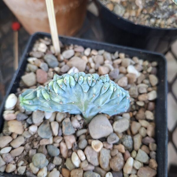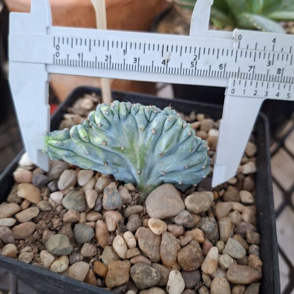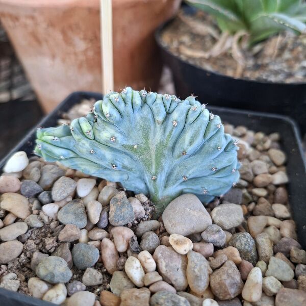 Die Crested Blue Candle Cactus is ’n opvallende, stadiggroeiende kaktus met ’n unieke waaier- of gekreste vorm. Sy blou-groen stingels is geribbel en dikwels golwend, wat dit ’n beeldhoukundige en argitektoniese voorkoms gee. Hierdie droogtebestande kaktus floreer in volle son en goed gedreineerde grond, wat dit ’n uitstaande keuse maak vir potte, rotstuine en vetplantversamelings.
