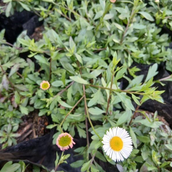 A charming, spreading perennial with clouds of tiny daisy-like flowers that shift from white to pink. Thrives in sun, poor soil, and even cracks between paving stones. Low water, long bloom season, and perfect for softening paths, walls, and containers.