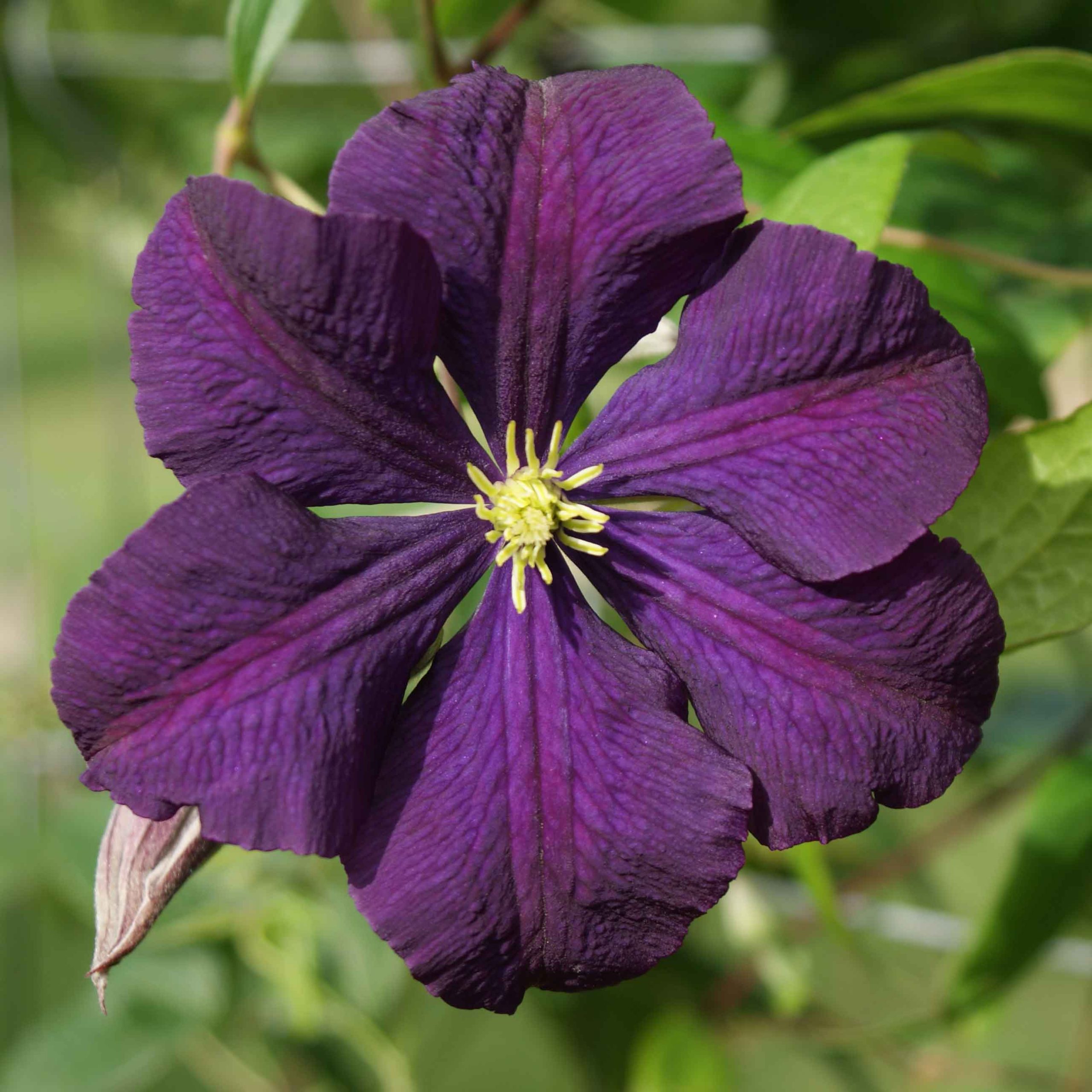 This clematis belongs to pruning group 3, meaning it flowers on the current season’s growth. For best results, prune back hard in late winter to about 20 cm above the ground, just above a pair of healthy buds. Regular feeding during the growing season will keep the flowers coming and the foliage fresh and healthy.