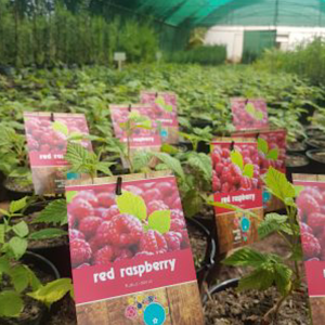 The raspberry plant is an upright growing, semi-self supporting shrub which should be placed in full sun or partly shade. It prefers well drained, light sandy or sandy-loam soils with a ph level between 5.8 and 6.8 (KCl). Well decomposed compost should preferably worked into the soil before planting. It bears edible berries which can be used for fresh eating, juice, jams, tarts, deserts or teas. it is a flori-cane variety which will bear fruit twice per year, once in spring and a second time in autumn.