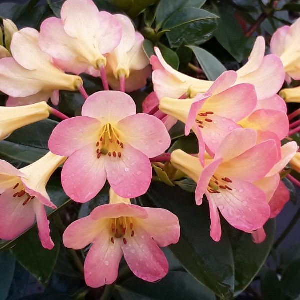 Grows to about 1.4m Upright.Apricot margins with cream inner flowers