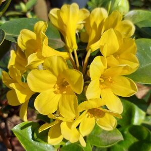 Bunches of butter yellow flowers. Flowers intermittently.